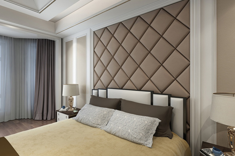 軟包背景墻向上延伸至天花板,視覺效果得以拓展,裝飾性更為突出。